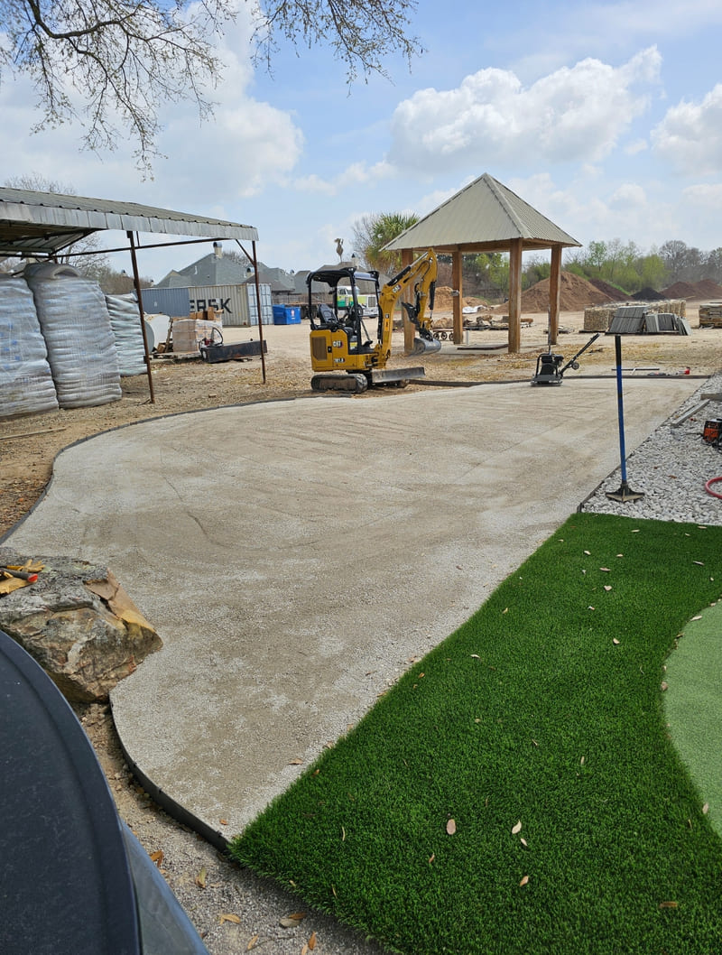 On this project we did an artificial turf install for Lafayette Materials. Its a local company that sells rock, dirt, sod, and artificial turf. The turf that we installed was for a display that they can use to show customers the different types of turf that they sell. We remove a little dirt from the area, then built it back up with #10 limestone bordered by metal landscaping border. Once everything was level and pitched at the right grade for drainage we packed it with our vibratory plate, followed by laying the turf in place. Once the turf was in place we added two large bolders to the area picked out by the customer. We then added our seam tape and adhesive permanently joining the seams together. Then to finish up we added antimicrobial infill and broomed it in standing the blades up for a beautiful fresh cut look.