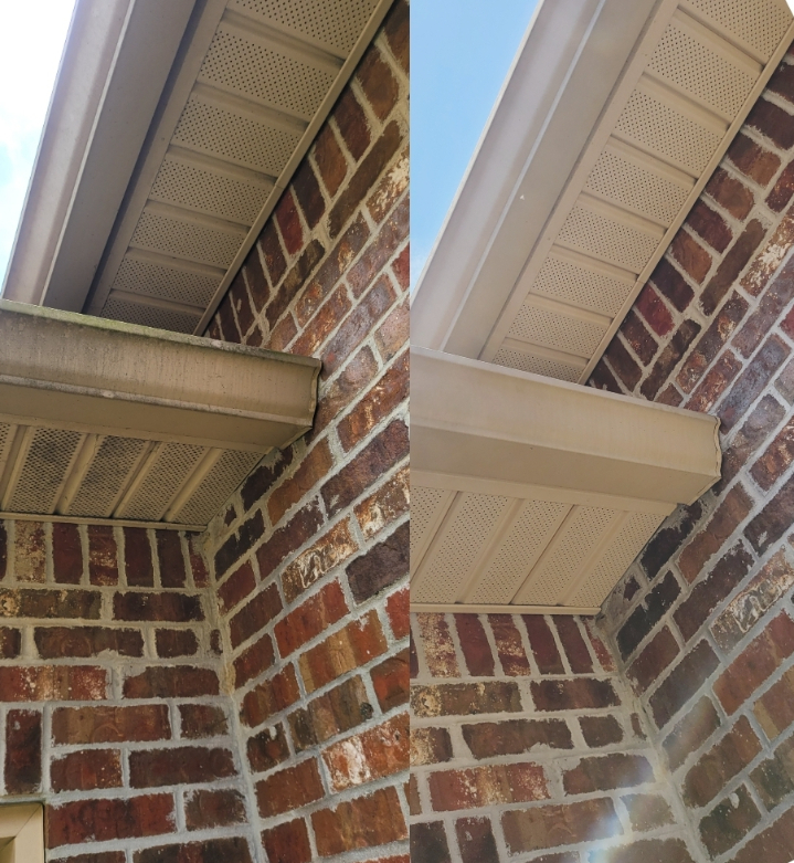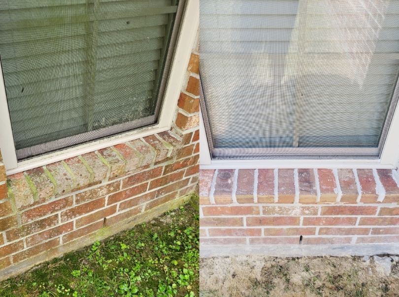 We were hired to clean a circle driveway after we finished the customer liked our work so much he had us clean the entire house shop and all of the concrete we pre treated all of the concrete before surface cleaning then we applied a post treatment to all concrete surfaces we then covered the front door which was stained wood with plastic followed by watering all the grass around the house we then down streamed all of the brick and vinyl with our commercial pressure washer followed by soft washing all of the Stucko at 3.5% with our softwash system we let everything dwell 15 minutes then rinsed the home with the ball valve on our commercial pressure washer.
